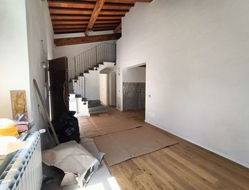 Percorrendo la strada che da Scandicci in zona VINGONE porta attraverso per via delle fonti alle Prime colline di Lastra a Signa; immersa nella campagne Vi presentiamo una porzione di colonica in fase di ristrutturazione di 120 mq c.a su due livelli con una resede di proprieta' oltre ad un terreno staccato di 500 mq c.a e due posti auto. L'ambiente e' cosi' composto: Ingresso, soggiorno con accesso alla resede di proprieta' che collega anche la cucina...