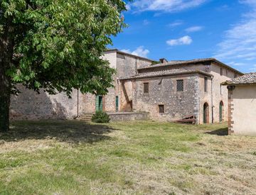 Splendido complesso immobiliare facente parte della grande tenuta del Castello de La Chiocciola nella Montagnola senese, attualmente in disuso ma un tempo con destinazione magazzini, rimessaggio attrezzi, cantina, stalla, granaio e che oggi ha bisogno di rinascere a nuova vita con una valorizzazione, rifunzionalizzazione e trasformazione.