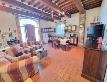 Montespertoli versante Firenze - In posizione collinare e panoramica, caratteristica colonica di circa 300 mq, libera su tre lati, con giardino privato e suddivisa in tre unità abitative indipendenti fra loro. Al piano terra si trovano due bilocali mentre al piano primo si sviluppa l'appartamento principale composto da ingresso, ampio soggiorno/cucina con antico focolare ed accesso ad una loggia pranzabile, due camere matrimoniali, bagno e ripostiglio,...