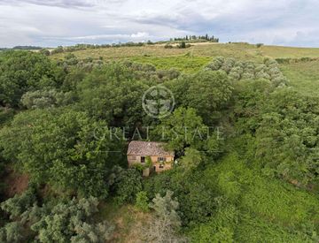 Grazioso casale da ristrutturare di circa 240 mq, disposto su due livelli, immerso nella campagna tra Pienza e Montepulciano, con 4,67 ha di terreno con uliveto e vigneto.