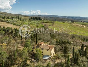 Panoramica villa indipendente di 585 mq circondata da circa di 2 ettari di terreno, in posizione previlegiata tra i vigneti Antinori nel Chianti Classico.