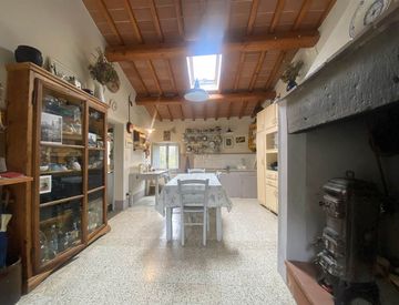 La proprieta' si compone anche di un fienile di mq. 127 su due piani, da ristrutturare, internamente ma con tetto rifatto e coibentato completano la proprieta'2 ampie cantine, un locale tecnico per caldaia a pellet e dispensa, legnaia e forno, piu' capanna in muratura mq. 25 circa C/2 nel giardino.
