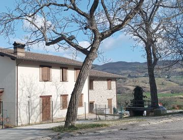 In zona collinare e panoramica, disponiamo d una porzione di casolare di nuova costruzione con due appartamenti composta da piano terra: ingresso, salone con termo camino, cucina abitabile, tre camere di cui due matrimoniali, due bagni; piano primo: ingresso, salone con stufa a pellet, cucina abitabile, tre camere, due bagni; piano seminterrato: cantina; annessi esterni condonati di 300mq più 12 ettari di terreno di cui 7000mq oliveto, 5 ettari seminativo...