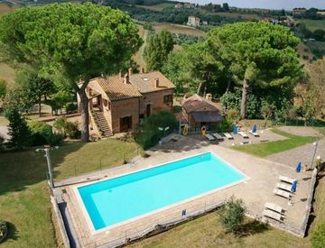 In zona discreta ed estremamente panoramica, compendio immobiliare di 572 mq composto da un casale principale su due livelli, ampio terreno circostante di 37.200 mq, piscina ed una dependance. Giungiamo alla proprietà percorrendo una strada privata di campagna e sin da subito possiamo notare l’esclusività della posizione, di fatto il casale è contornato da alberi secolari ad alto fusto quali pini, cipressi, pioppi, tigli ed ontani oltre ad una varietà...