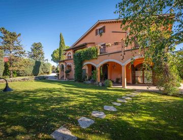 Dal cancello carrabile si accede ad un viale privato che conduce alla dimora principale, caratterizzata da materiali autentici e spazi ben distribuiti.