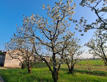 L'immobile circondato da ciliegi e prati in fiore si sviluppa su tre piani fuori terra su cui insiste l’unità immobiliare ad uso residenziale e relativi accessori.
