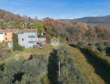 rustico su tre livelli con ampio terrazzo e tettoia sottostante, immerso nel verde di un giardino con ulivi di 2300 metri.