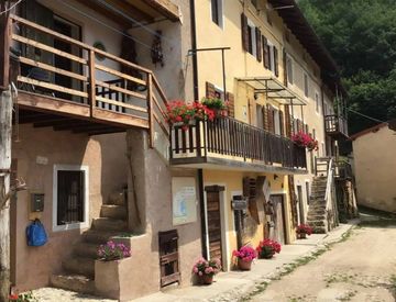 Gruppo di tipiche case a schiera in una contrada soleggiata e ben esposta di posina, situata tra le montagne a 790 m. s. l. m. ad un passo dal pasubio.
