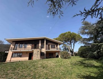 Teolo Alta, appena fuori paese, circondata da 8200 mq di parco in larga parte a prato piantumato, in posizione soleggiata e con vista aperta e panoramica a 360°, proponiamo questa villa degli anni '60 ristrutturata completamente nel 2000, che offre spazi ampi e razionali: al piano terra l'ampio ingresso divide il soggiorno/sala da pranzo con imponente caminetto in pietra, dalla cucina abitabile dove troviamo un secondo caminetto angolare per le grigliate...