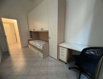 La stanza, luminosa e silenziosa, è dotata di letto singolo (+1 estraibile per poter ospitare), scrivania, sedia e armadio. L’appartamento, posto al 2° piano senza ascensore, è composto complessivamente da tre camere da letto, due ingressi, soggiorno/tinello (con divano letto), cucinotto e un bagno. Gli ambienti sono interamente arredati con mobili recentemente rinnovati.