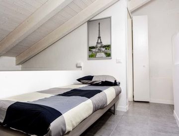 Cette chambre mesure 15 mètres carrés, avec accès à une salle de bain partagée, et est située au 3ème étage d'un bâtiment bien équipé. Profitez d'équipements tels que ascenseur, WiFi, télévision, machine à laver, lave-vaisselle et four. L'appartement dispose également du chauffage pour votre confort.
