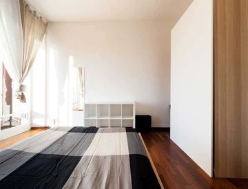 Questa stanza misura 17,5 metri quadrati e dispone di un balcone privato. L'appartamento include 4 stanze e 2 bagni, insieme a servizi come ascensore, lavastoviglie, lavatrice, televisione, WiFi, forno e riscaldamento.