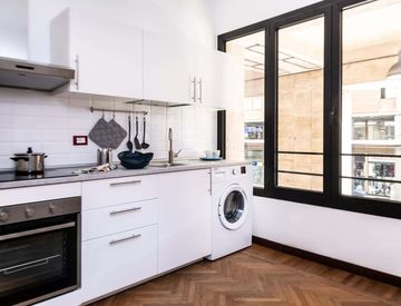 Located on the first floor, bright and welcoming. 75 square meters of surface. It consists of kitchen, living room, 1 bathroom and 4 single rooms. The apartment has been excellently renovated according to everything our students need. Equipped with WI-FI, washing machine, equipped kitchen....