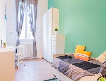 Si tratta di una stanza singola di 13,77 m² con riscaldamento e Wi‑Fi in appartamento. L'appartamento è ampio, 150 m², con 8 posti letto distribuiti su 8 stanze e 3 bagni, perfetto per la convivenza.