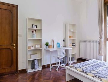 Si tratta di una Stanza all'interno di un appartamento di 180 m², al 2° piano, con 2 bagni, 7 posti letto distribuiti su 7 stanze.