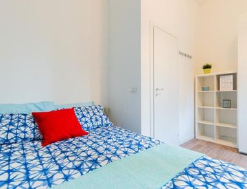 Comfortable room with a queen size bed and 13.59 m² of space, ideal for focused study or relaxing after classes. The apartment offers Wi‑Fi, central heating, an oven, a washing machine and a dishwasher, plus access to one of three bathrooms.