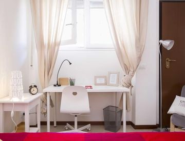 Comfortable room with a queen size bed and 13.59 m² of space, ideal for focused study or relaxing after classes. The apartment offers Wi‑Fi, central heating, an oven, a washing machine and a dishwasher, plus access to one of three bathrooms.
