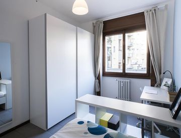 Questa stanza luminosa di 15,43 m² in un appartamento di 3 locali propone un comodo letto queen e l'accesso a un bagno (totale 1 bagno) in un appartamento di 90 m², ideale per la convivenza fra studenti e giovani professionisti.