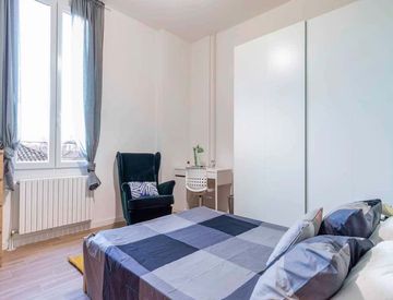 Questa stanza misura 17,47 metri quadrati ed è parte di un ampio appartamento con 8 stanze e 3 bagni. Goditi servizi come lavatrice, lavastoviglie, televisione e WiFi, per un'esperienza abitativa confortevole.