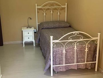 Stanza Singola in struttura Nr 1- Singola con Balcone privato che affaccia su giardino della struttura, tavolo sedia, scrrivania, armadio in camera.