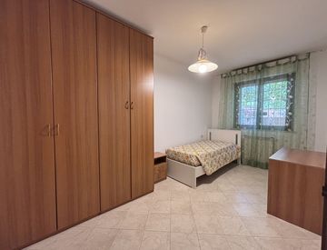 All’interno di un elegante residence in Via Poseidone proponiamo in affitto stanza matrimoniale ad uso singola di 14 mq in appartamento posto al piano terra di 115 mq ca, composto da ampio salone, cucina abitabile, 3 camere da letto, doppi servizi (uno con vasca e l’altro con doccia) e giardino di 100 mq ca. (40 mq. ca. a verde, il resto mattonato).