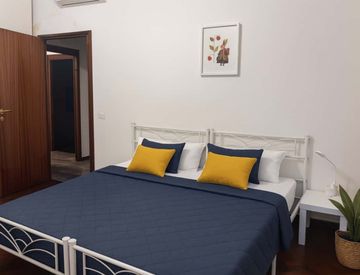 La stanza è arredata a nuovo con letto matrimoniale, Ampio Armadio a 6 ante, scrivania e sedia pc, TV smart, AC.