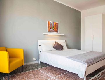 Affittasi stanza singola di circa 16 mq, completamente arredata con letto, scrivania e armadio, situata all’interno di un ampio appartamento di 150 mq al settimo piano con ascensore.