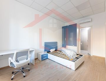 Le camere, ampie e luminose, sono arredate con soluzioni moderne e materiali di qualità superiore, offrendo un ambiente raffinato e perfettamente organizzato per studio e relax: