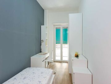Questa stanza misura 9,66 m² e dispone di un balcone privato, rendendola un rifugio delizioso. L'edificio offre servizi come un ascensore, lavatrice, televisione, WiFi, forno, riscaldamento e microonde. Con un totale di 2 bagni e 6 letti in 6 stanze, è ideale per la vita condivisa.