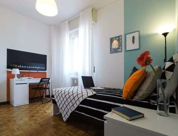 San Faustino area. We rent a beautiful single room renovated to offer comfort and convenience to our students. The room is equipped with a single bed, wardrobe, desk, bedside table, curtains, mirror.
