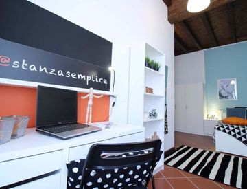 Nel centro storico. Si affitta una bellissima camera singola ristrutturata per offrire comfort e comodità ai nostri studenti. La camera è dotata di letto singolo, armadio a 3 ante, scrivania con contenitore, comodino, tende, specchio, scarpiera e libreria.