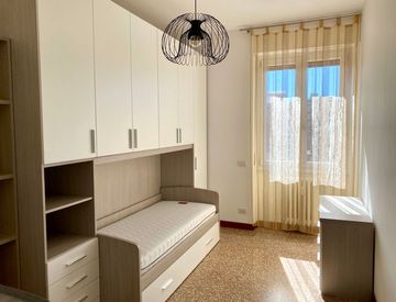 Rinnovato in molte sue parti, è composto da un ampio ingresso, una spaziosa cucina abitabile con un balcone di servizio, disimpegno, 2 bagni e 4 camere (tutte affittate ad uso singola, a sole ragazze).