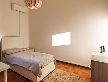 Le stanze si trovano in un appartamento di 190 mq, molto luminoso, al terzo piano di un immobile molto signorile e ben abitato, servito da doppio ascensore e con servizio di portineria sei giorni alla camere sono tutte dotate di letto matrimoniale o da una piazza e mezza, armadio, scrivania, sedia, comodino, servizio wifi