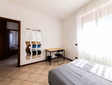 Ampia e luminosa stanza ad uso singolo con letto matrimoniale, situata in appartamento recentemente rinnovato composto in totale da 4 stanze da letto, cucina, 1 bagno e un bagno di servizio.