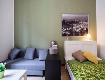 Stanza singola in un appartamento condiviso, composto da 9 camere e 3 bagni.