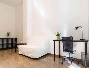 De unos 31 m2 con una cama y media y un puesto de trabajo. Con wi-fi, servicios de conserjería, lavavajillas, lavadora.