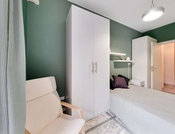 The apartment is designed in a modern style with spacious rooms and a great kitchen. All costs are included in the rent, including bills, internet, and more!