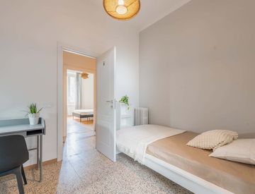 In an apartment located in viale Giovanni da Cermenate 41, this private room is reserved for university students, interns or young workers. Fully furnished, it is equipped with double bed, bedside table with lamp, wardrobe, bookcase, desk and chair.