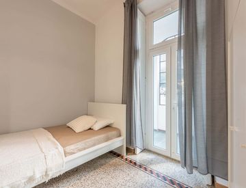 In an apartment located in viale Giovanni da Cermenate 41, this private room is reserved for university students, interns or young workers. Fully furnished, it is equipped with double bed, bedside table with lamp, wardrobe, bookcase, desk and chair.