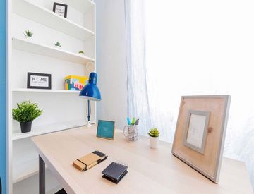 Of about 17 sqm with a one and a half bed and a work station. With wifi, dishwasher, washing machine.
