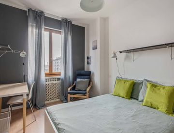 The apartment is designed in a modern style with spacious rooms and a great kitchen. All costs are included in the rent, including bills, internet, and more!