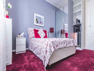 Of about 18 sqm with a one and a half bed and a work station. With wifi, washing machine.