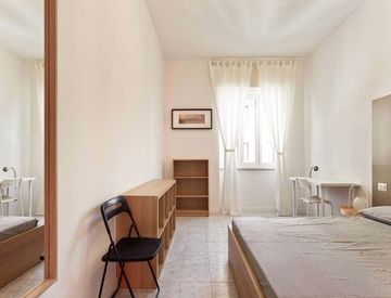 Stanza singola in un appartamento condiviso, composto da 8 camere e 3 bagni.