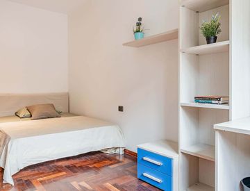 In an apartment located in via Sesto San Giovanni 31, this private room is reserved for university students, interns or young workers. Fully furnished, it is equipped with single bed, bedside table with lamp, wardrobe, bookcase, desk and chair.