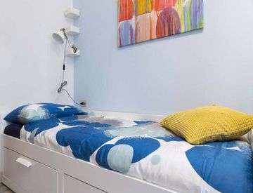 This Room offers a comfortable layout of 11 m² and benefits from central heating, high-speed WiFi, an oven, dishwasher and washing machine in the apartment. The flat spans 200 m² with 6 beds, 6 rooms and 2 bathrooms, set on the 1st floor.