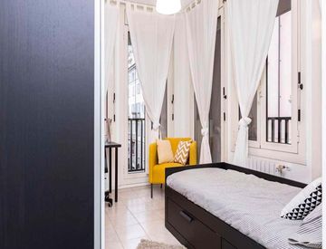 La habitación tiene 13 m² y acceso a balcón. El piso cuenta con 3 baños, Wi‑Fi, calefacción, un horno, lavadora y lavavajillas para facilitar las tareas diarias.