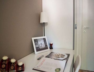 Of about 0 sqm with a one and a half bed and a work station. With wifi, concierge services, dishwasher, washing machine.