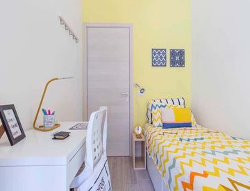 La Stanza misura 9,2 m² e dispone di balcone e letto singolo. L'appartamento offre Wi‑Fi, televisione, forno e riscaldamento per il massimo comfort.