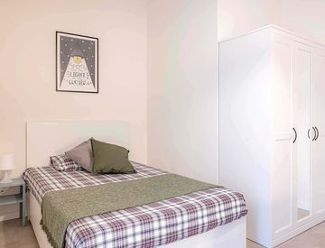 In an apartment located in viale Monza 241, this private room is reserved for university students, interns or young workers. Fully furnished, it is equipped with single bed, bedside table with lamp, wardrobe, bookcase, desk and chair.