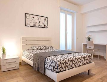 In an apartment located in via Rotta 10, this private room is reserved for university students, interns or young workers. Fully furnished, it is equipped with double bed, bedside table with lamp, wardrobe, dresser, bookcase, desk and chair.